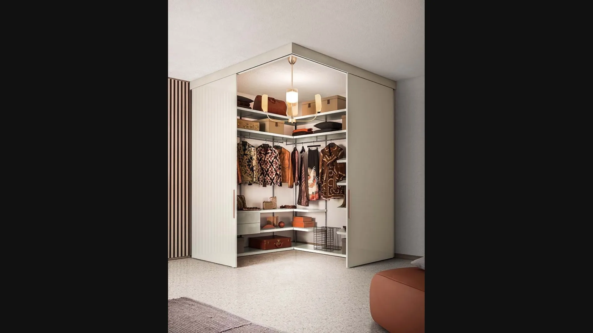 Contattaci e scopri di più sulla nostra serie di Arredamento Casa: potrai ultimare la zona del riposo potendo usufruire di una ampia disponibilità di contenitori design, come l'armadio in laccato opaco in foto. Per ammobiliare al meglio una stanza pratica e sofisticata, opta per le più esclusive soluzioni dei migliori produttori, letti, armadi e comodini di alto contenuto estetico. Cabina Armadio Vista 02 di Pianca: compila il form per ricevere info di ogni sorta e consigli per ammobiliare la camera che hai sempre voluto. Gli Armadi cabine armadio con ante scorrevoli sono componenti essenziali nella camera da letto, per renderla ammobiliata al meglio, funzionale e completa di tutto.