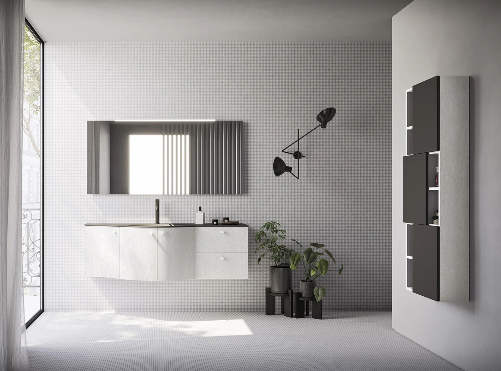 Con le proposte che proponiamo ti garantirai mobili fatti a regola d'arte e alla moda anche per il bagno, che va progettato con cura, con funzionalità e stile. Materie prime di qualità e una ricca gamma di colori assicurano una progettualità unica e materiali di prima scelta che resistano a diverse sostanze o composti. Arbi progetta proposte per l’Arredo Bagno moderno con mobili bagno sospesi che coniugano design unico e funzionalità, come questo locale chiede. Esteticamente apprezzabile e utile in ogni stanza da bagno, un modello in melaminico moderno come quello nella fotografia risolverà le tue esigenze abitative di ogni tipo. Il modello Mobile da Bagno Ho-me plus curvo 57 di Arbi in melaminico fa parte della completa collezione di mobili per la sala da bagno del marchio, sempre di charme.
