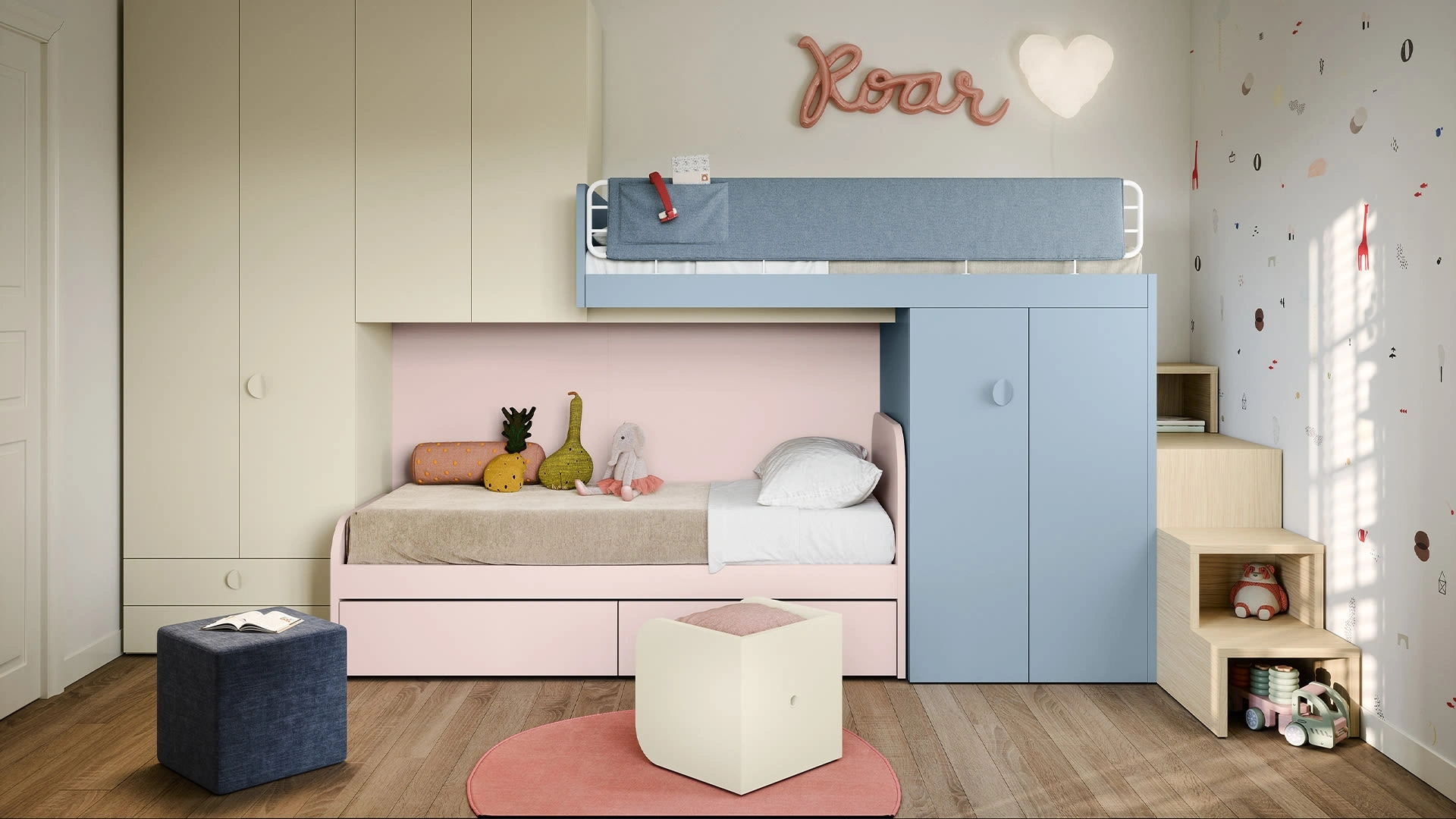 La Cameretta con letti a soppalco di Nidi in melaminico è un mondo complesso da arredare con attenzione, coniugando vari accessori su misura. Nidi asseconda il gusto dei giovani e i desideri degli adulti con le sue Camerette moderne a soppalco, ideali per necessità di ogni genere. Con una composizione arredativa Nidi, potrai ultimare con praticità e design il luogo dove i tuoi figli passano gli anni importanti della vita. Vieni in negozio e potrai vedere dal vivo tutte le più belle composizioni d'arredo a soppalco moderne di Nidi per i più giovani.