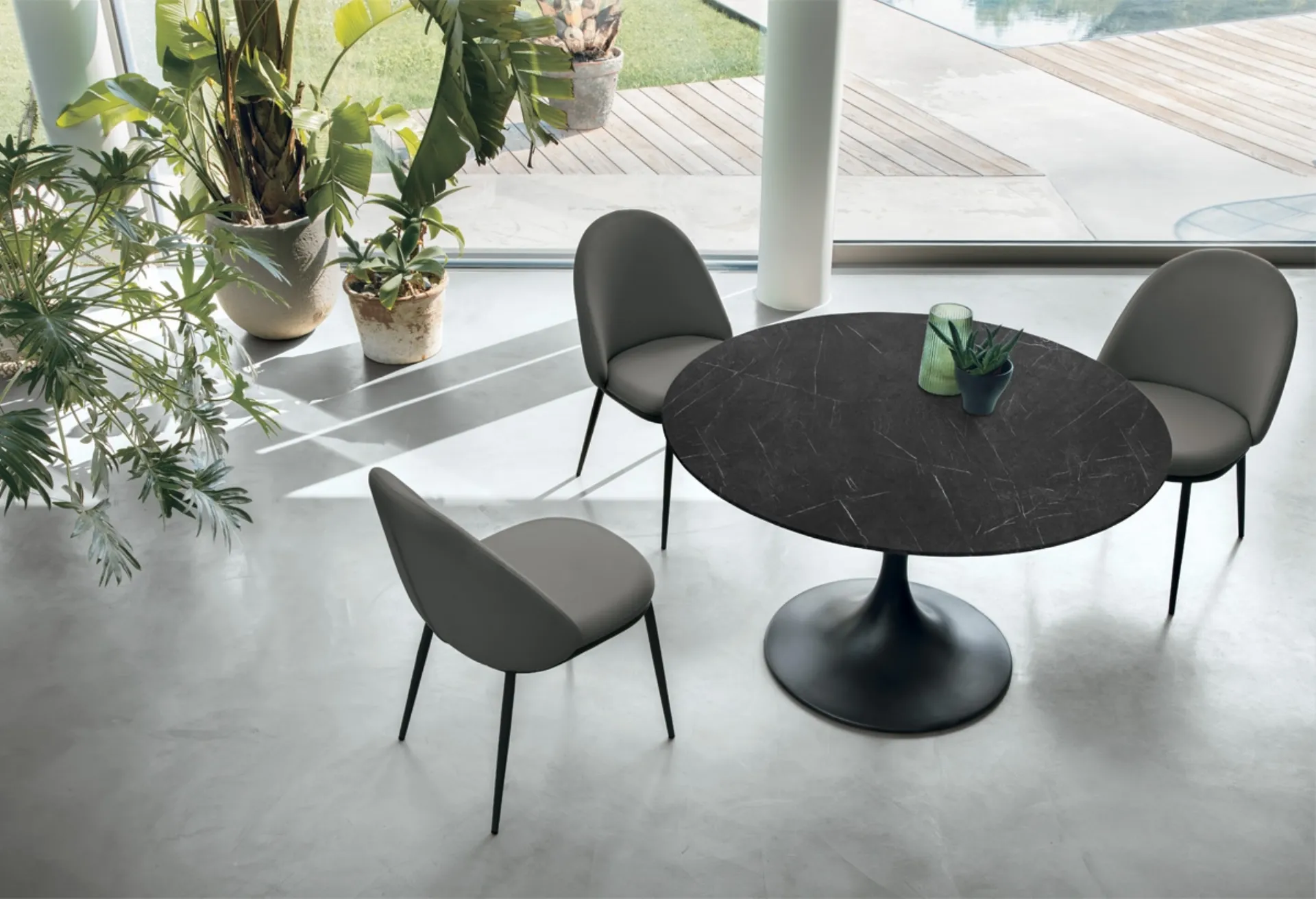 Ideali per dare vita a degli abbinamenti unici con sedute e complementi moderni, i Tavoli allungabili della marca sono soluzioni tra le più esclusive in commercio, ideali per il soggiorno e la zona cucina. Un modello come quello in foto, in abbinamento alle giuste sedute, saprà completare lo stile delle stanze domestiche dedicate in assoluto alla convivialità. Tavolo rotondo Aiace di Target Point: realizzato in materiali durevoli è contraddistinto dalle linee decise del top e da un basamento elegante e sofisticato. Se sei alla ricerca di un tavolo da pranzo di alto contenuto estetico, contattaci e ricevi info e preventivi sul modello mostrato in foto. Il noto e conosciuto marchio Target Point, leader nella realizzazione di arredi in gres, ha scelto per la sua collezione una vasta gamma di finiture, linee e tonalità.